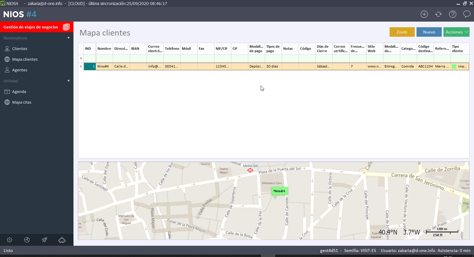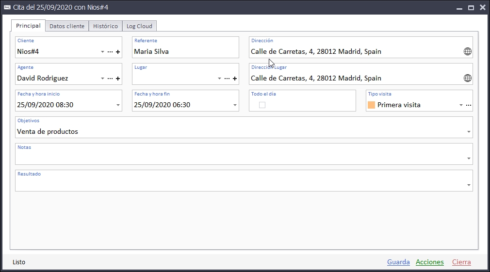 Una base excelente para ver cómo administrar las citas de sus agentes y verlas en el mapa de Nios4.