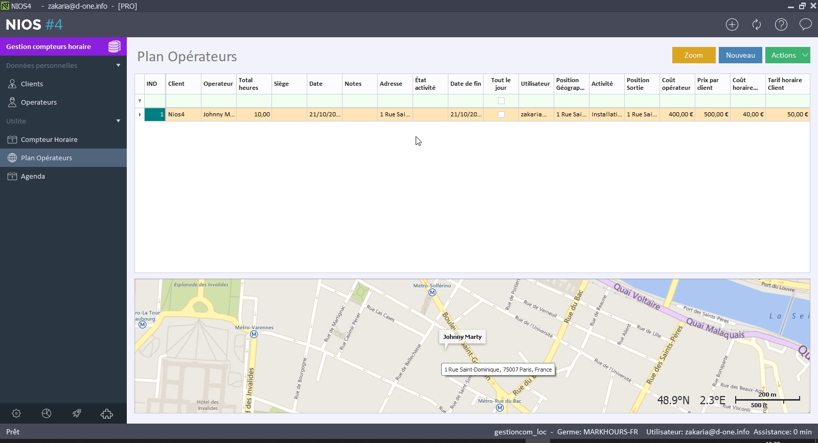 Gestion compteur horaire des employés avec détection localisation GPS et visualisation sur plan