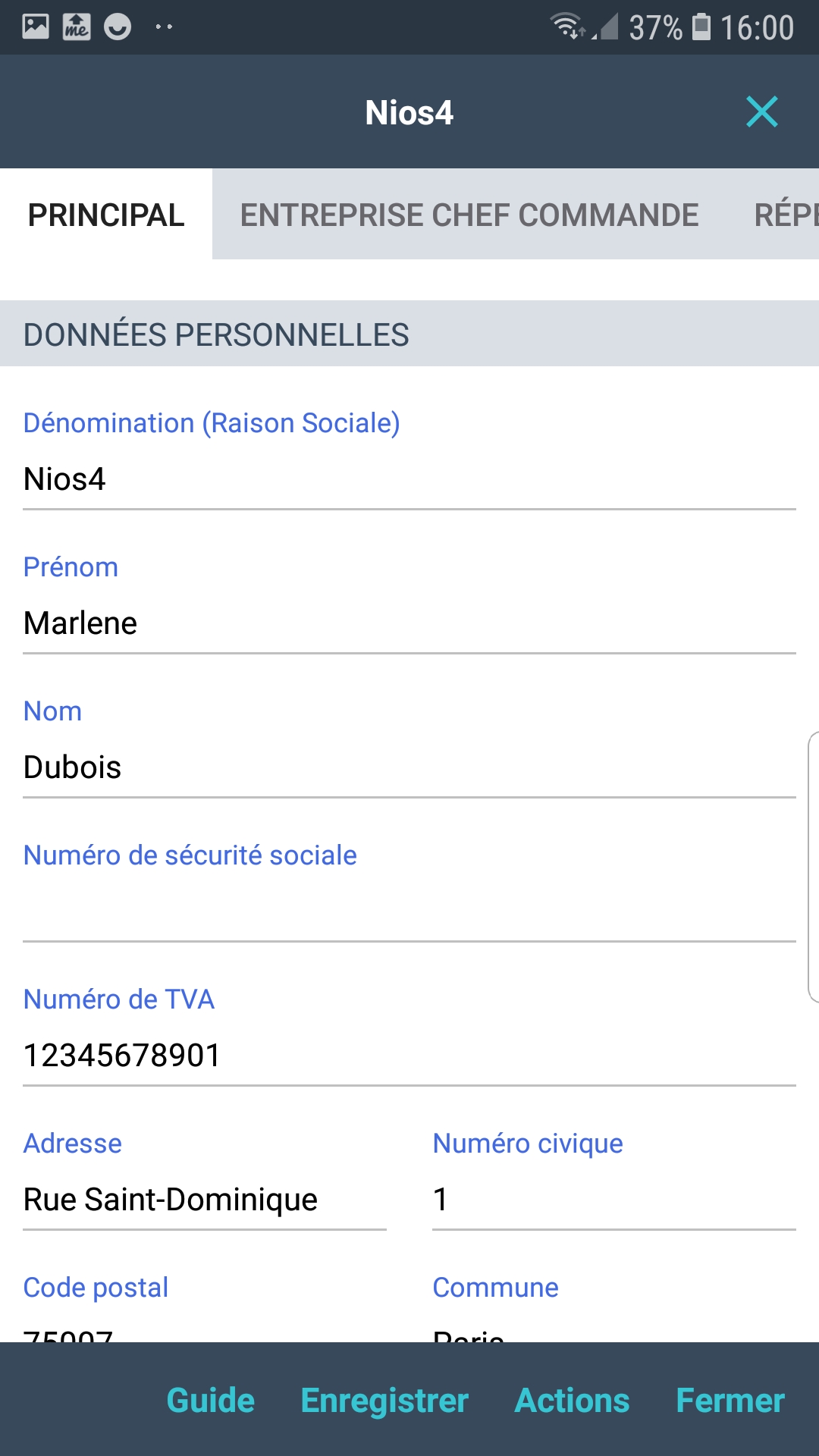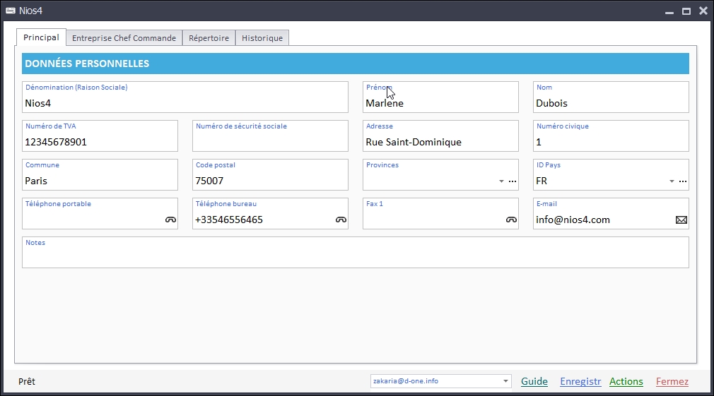 Un modèle Nios4 de base pour comprendre le fonctionnement de l'attribution de données à un technicien spécifique.