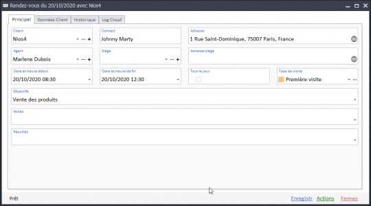 Une excellente base pour voir comment gérer les rendez-vous de vos agents et les visualiser sur la carte Nios4.