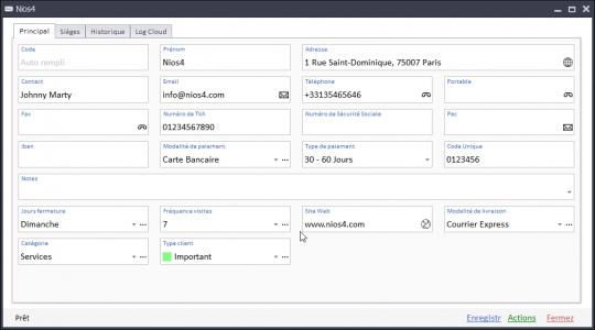 Entrez vos clients et agents pour planifier et afficher les rendez-vous dans l'agenda ou la carte. Grâce à cela sur les versions mobiles, il sera possible d'activer la navigation directement à l'aide des applications du téléphone.