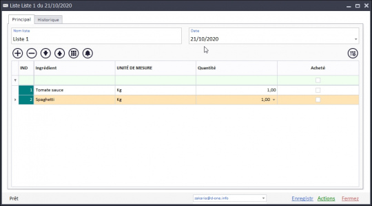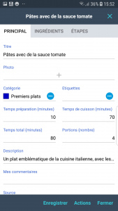 La base de données créée montre en effet comment une section est configurée pour être utilisée sur l'ordinateur (recettes) tandis que la section liste de courses est principalement utilisée au téléphone.