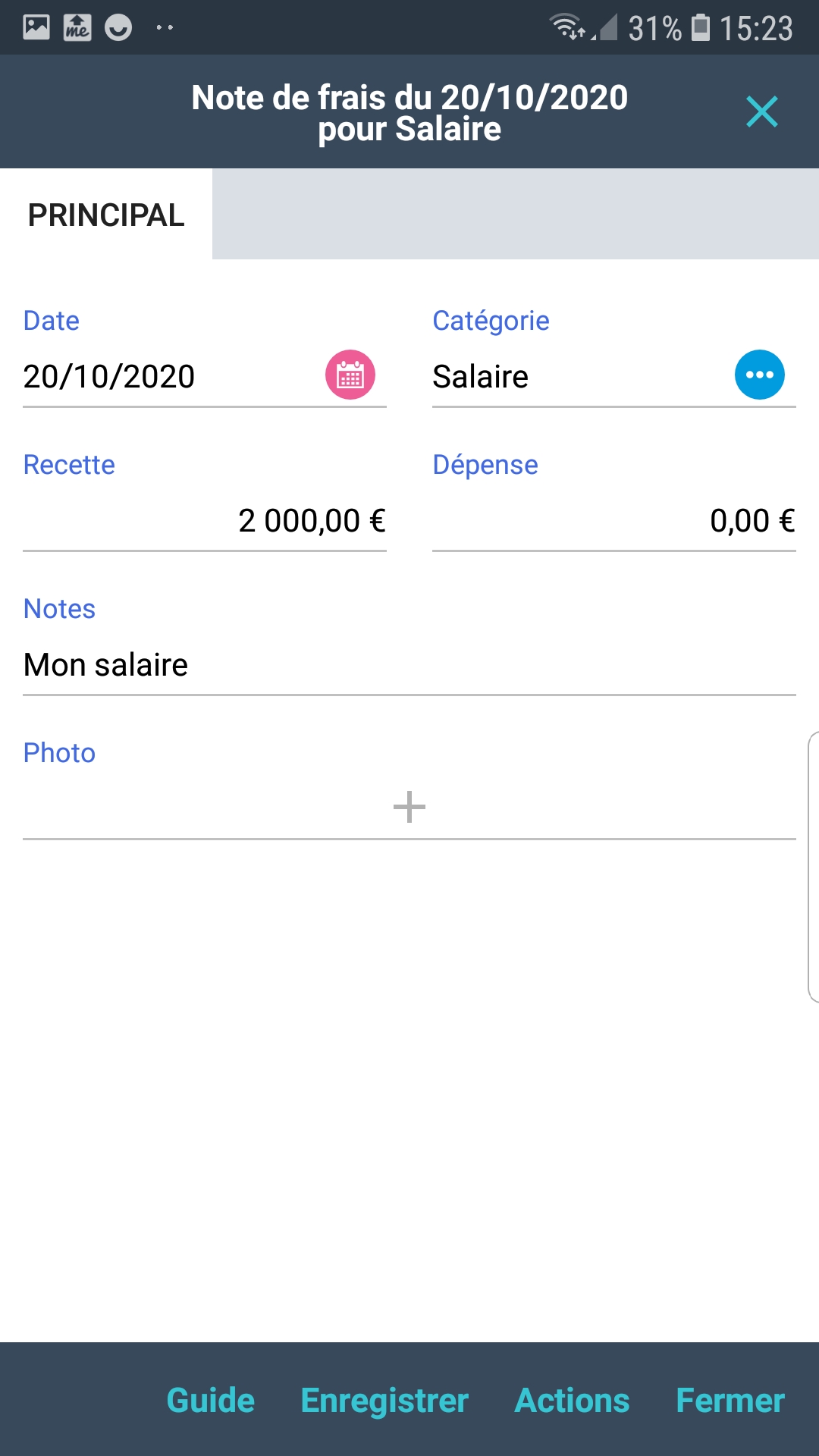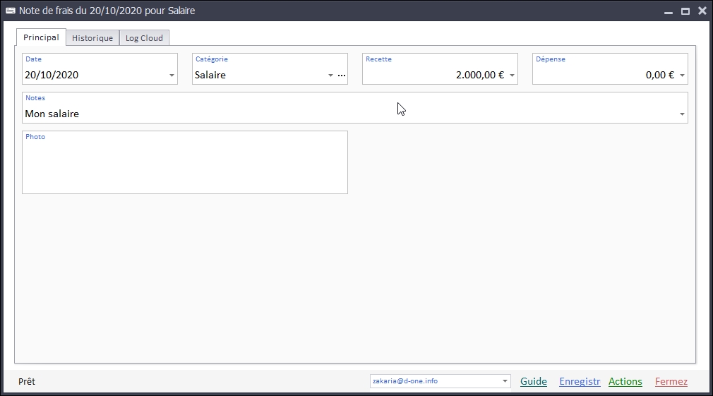 Un excellent point de départ pour gérer vos notes de frais avec revenus et dépenses.