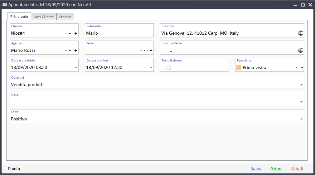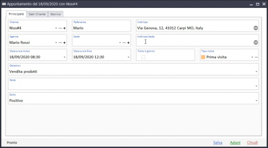 Una ottima base per vedere come gestire gli appuntamenti dei tuoi agenti e visualizzarli sulla mappa di Nios4.