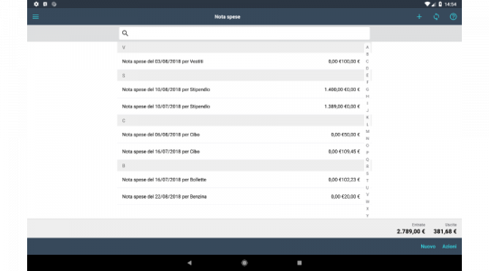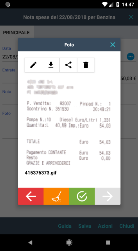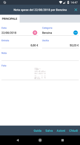 Gestione Nota spese, entrate e uscite economiche con foto dello scontrino o della ricevuta.