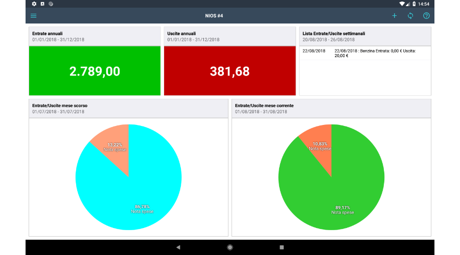 Tieni sempre sotto controllo il tuo bilancio inserendo tutti i dati che vuoi da qualunque tuo dispositivo. Organizza le note spese aziendali di collaboratori, dipendenti e agenti, ma anche delle tue personali.