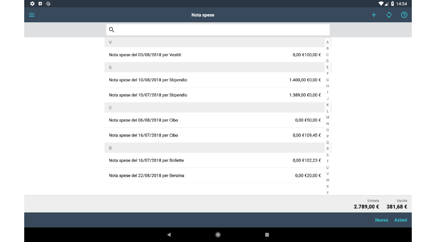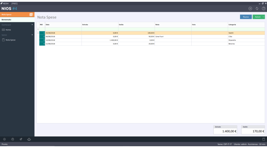 Una ottima base di partenza per gestire le tue note spese con entrate e uscite.
